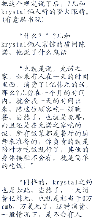 “哦对了,餐厅里还有一个有趣的规则:如果有人在当天的营业时间里面,消费满了亿韩元的话,那么一个月内,会在餐厅里安排一次这位顾客和老板娘一同免费一顿晚餐!”陈诺