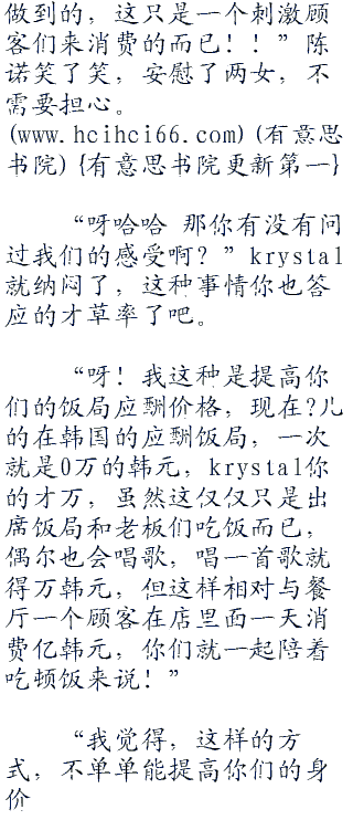 “可是…欧巴,这个当老板娘什么的是可以,但问题是,我们当歌手的,认识的朋友肯定知道,到时候他们知道我们是这餐厅的股东了,要来餐厅吃饭什么的,找我们要打折什么的呢,我们要怎么办?”krystal问的这个问题,让陈诺好好的惊讶了一把。