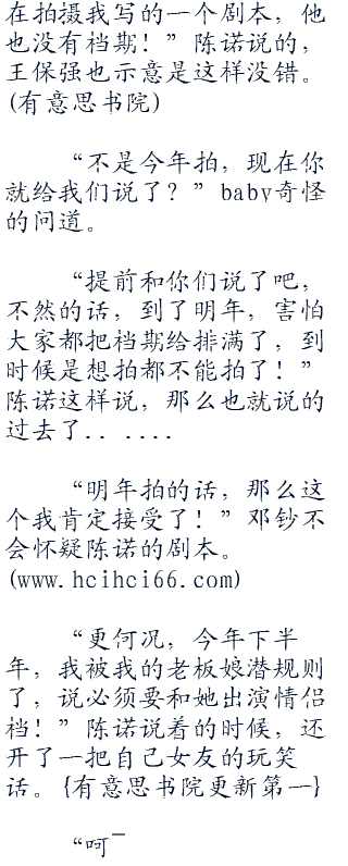 都搞定了这一些后,陈诺在八月初就回到了中国,也是在上海这里,现在需要谈下一个电影,目前这电影他需要来搞定。