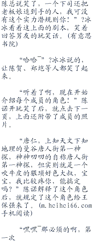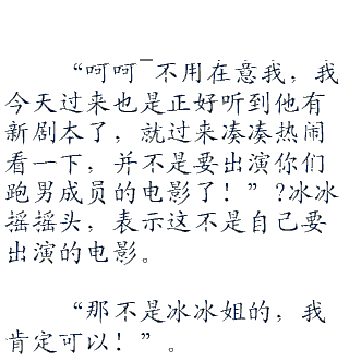 ?冰冰听了后,也没有说这个问题,而是坐在位置上,听着自己的男人在发表自己的意见。