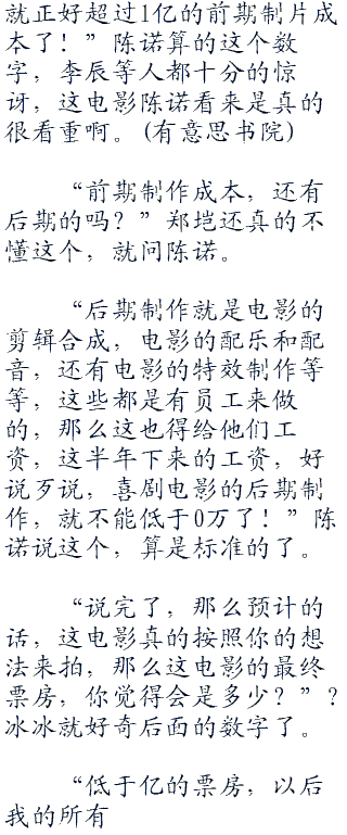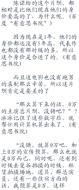 “我来当主导演,然后副导演的话,这点我们可以让跑男的总导演来担当一下,这ok吗,俞导?”陈诺把自己的想法告诉了俞航英。