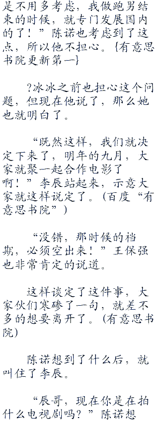 “那么这样,我2月的下半个月,3月、4月和5月这时间,就是到美国拍电影,那么到五月底的时候,导演,我们可以马上开始跑男的第三季了吧?”陈诺提议的这个时间,俞航英听了,也点头,差不多也是这样。