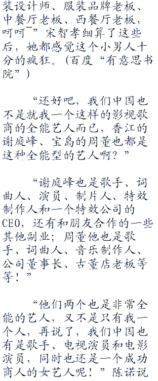 “知道,从输给你的那一刻开始,就开始了解有关你的一切了,没想到你还挺厉害的啊,到现在已经全能发展了,歌手、词曲人、唱片制作人、演员、编剧、电影导演、mv导演、特效制作人、电影制作人、制片人、服
