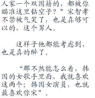 宋智孝很惊讶他会这样,但她也不知道怎么的,自己就选择了相信他。