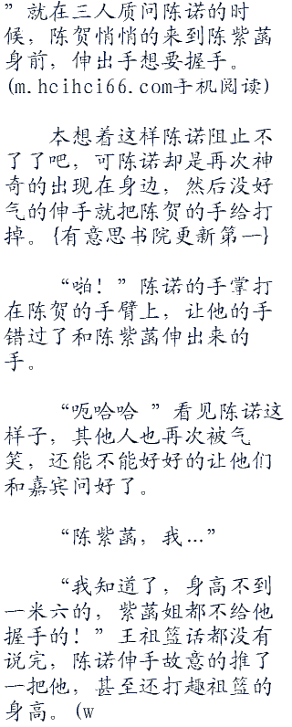 “哟呵~你好你好!”陈诺如同刚才对待邓钞一样,中途横插一只手过来,握住郑垲的手,从而的也让陈紫菡的手不能给他们碰到。