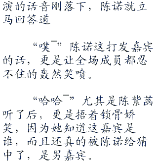 “哈哈~”看见陈诺再次阻止了郑垲要求和陈紫菡握手后,栏目组的导演和作家们,都被陈诺这种过度的保护女嘉宾给逗的爆笑。