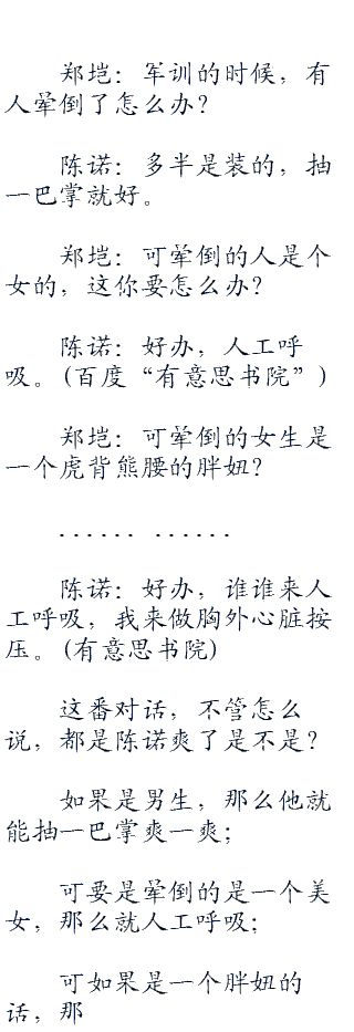 本来还一副无所谓的陈诺,当听到运动的人是女生后,他立马就正经起来,非常君子的说‘人工呼吸’