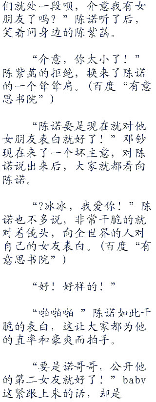 “要是诺哥哥不每次都欺负我就好了!”baby也把自己想要对陈诺说的,趁着这次机会给说了出来。