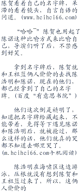 “哈哈~”陈贺的?n瑟劲,让拍摄的导演们,都不禁感到好笑。