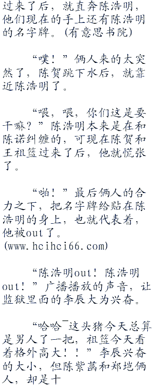 “陈紫菡out!陈紫菡out!”广播通知的消息,让监狱里面的三人一阵欢呼。