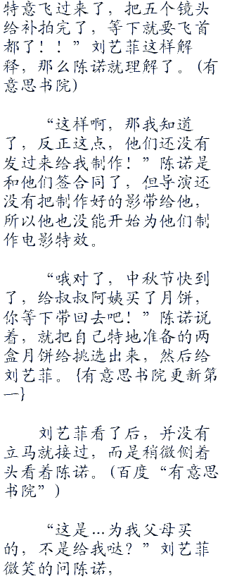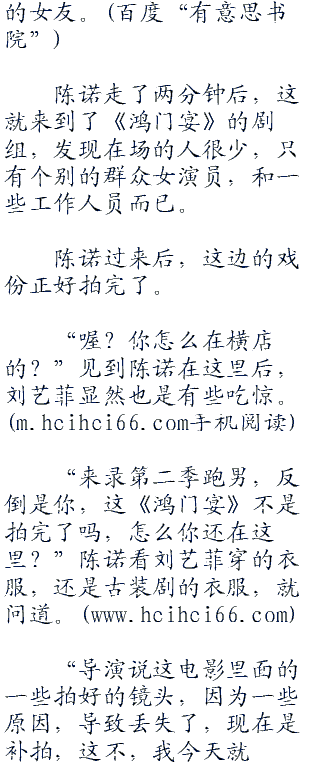 “是拍完了,但具体是怎么还在横店影视城我也不知道,我是刚好和她的经纪人联系过,知道她还在横店的!”刘晓雯解释的,陈诺看了看,前面走就是去《轩辕剑》的剧组了,往左走,好像就是去《鸿门宴》的剧组了。