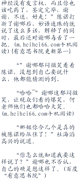 “你说啥呢,这孩子没吃药吧?!”谢哪也没有生气,而是故意装出夸张的搞笑样子来质问陈诺。