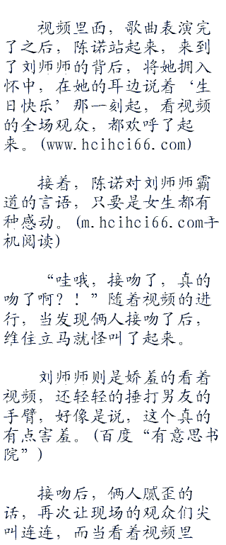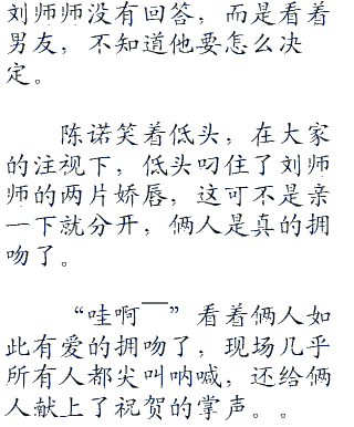 而刘师师感动的流泪,而坐在一个暗暗的角落,所以人都没有注意到,就算是看视频的大家伙们都没有注意到坐在角落里的陈诺。