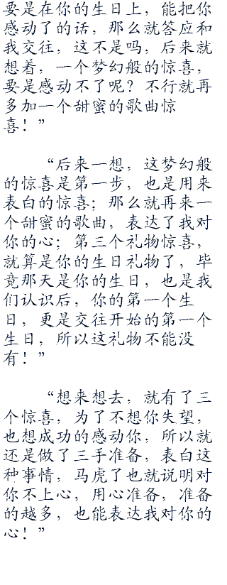 “哇~~好浪漫的惊喜!”看着视频的谢哪、吴欣两个女主持,还有现场的所有女观众和女作家们,看了后,也觉得十分惊喜浪漫。