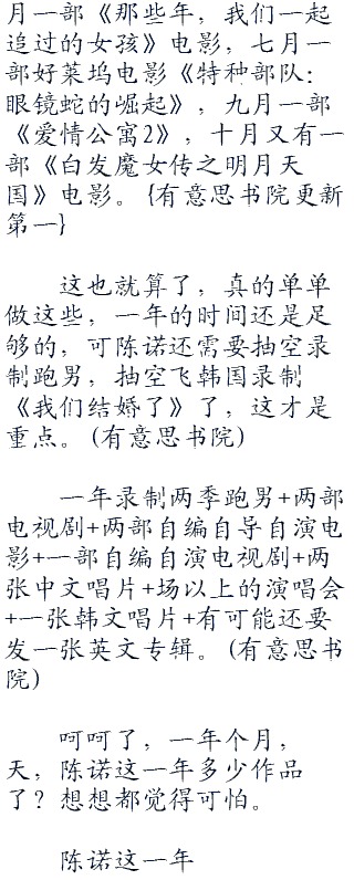 算下来,他下半年的档期的确是满了,《白发魔女之明月天国》这电影,他也要当导演,所以月、月这两个月,基本上是没有时间能出去旅游的了。