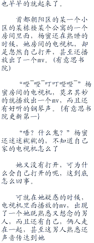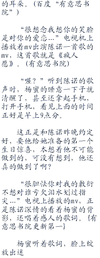 晚上,陈诺洗完澡出来,准备等女友进来聊聊天的时候,却是接到了杨蜜的电话。