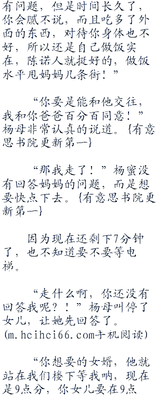 “蜜蜜,你要去哪里?”杨蜜的妈妈见到女儿要出去后,立马就追问。
