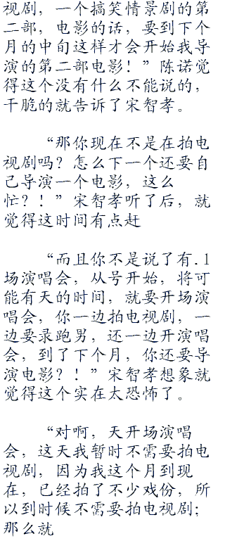 “我还想问你,今天的节目怎么没有过来,而是到明天才来,身体不舒服?”陈诺是听说了今天这期节目,没有宋智孝,所以就想到是不是她身体不舒服。