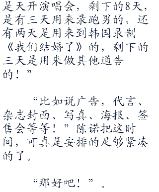 如果明天不录跑男的话,可能就得得到陈诺号和号这连续的两场演唱会结束了,那么到号,他们才能录节目了。