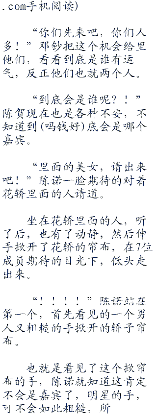 “呃啊~”两个花轿来到了成员们的身边后,轿夫蹲下来,把花轿给放下来的时候,还有点不舒服的呻吟。