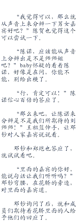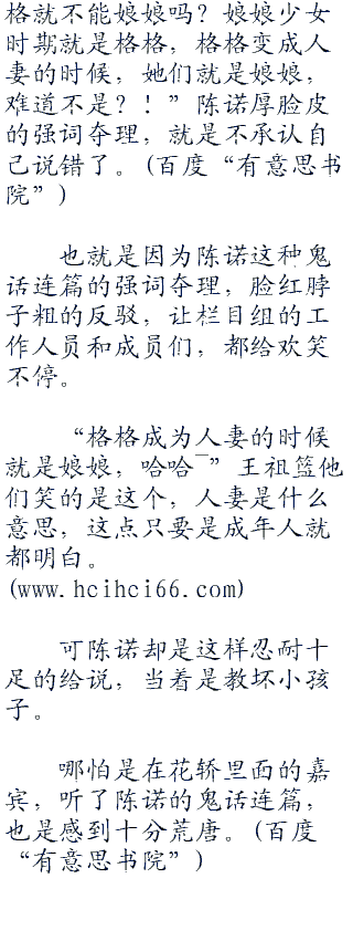 “那我有什么办法,我以为刚才的大叔抬轿子那么累,就想着里面有人,是嘉宾没错了,可天知道栏目组这么恶心,还让赵导演这样的吨位坐进来,难怪人家大叔都肾疼了!”陈诺激动非常的吐槽栏目组,都是他们的错