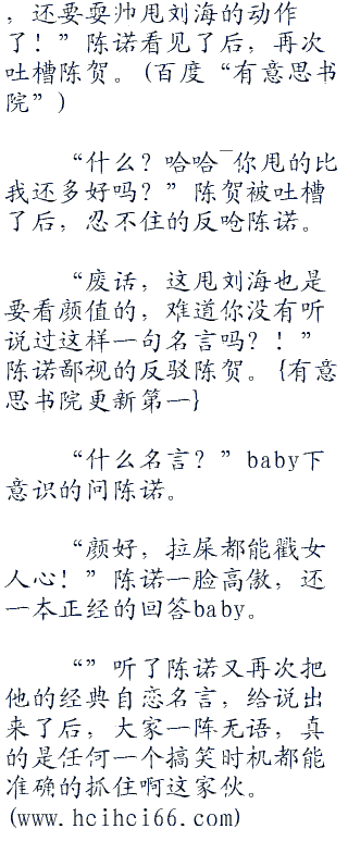 “真是的,这都是什么啊?!”baby也是觉得非常的丢人,看来这节目播出后,陈诺这轻浮低廉又有格调的手势,有被人给模仿了。