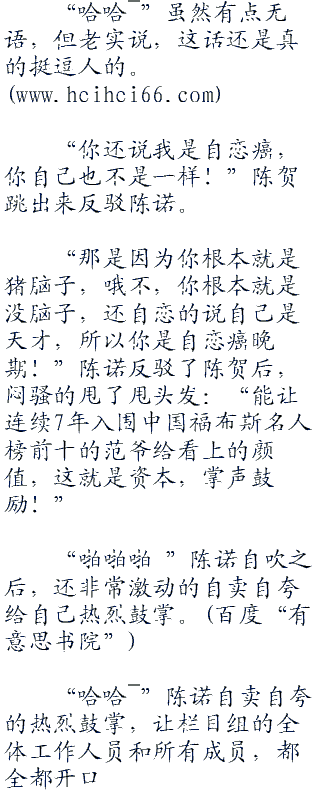 “哈哈~”但是陈诺这前面的口头禅,却是十分的有趣,大家听了‘嘿~我个暴脾气’后,笑声总是忍不住的就响彻起来。