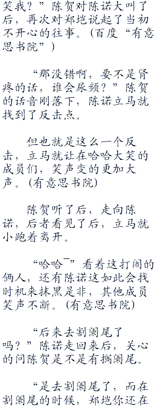 “如果你当时不陪我去割阑尾,你就犯罪了你知道吗?”陈贺一脸认真的对自己的昔日同学说道。