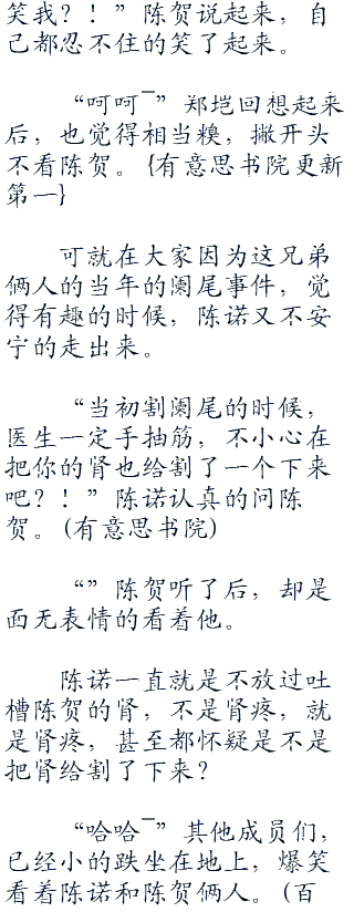 “呵呵~”大家伙看着这兄弟俩人,在讨论割阑尾这件事,也没有插嘴。