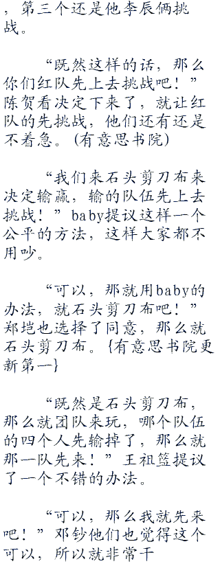 笑完了之后,baby道:“你们红队呢,要谁来挑战?”