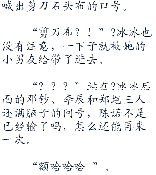 “要是不行就算了,我们还没有要妹妹呢!”陈诺说着就过来劝女友冷静点,意思说:他们还没有要女儿呢。