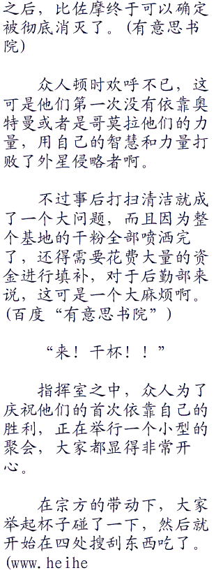 嘿,居间惠能当上队长还是有两下子的,至少她知道了比佐摩的习性之后,就知道拥有大量氧气的地方肯定是他存在的地方,用这种方式来搜查残余,也是够聪明的了。