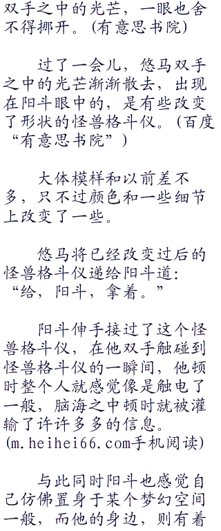 阳斗有些吃惊的看向了悠马手中的怪兽格斗仪,他难以想象,原来那些和自己一起战斗过的怪兽,都是有生命的。