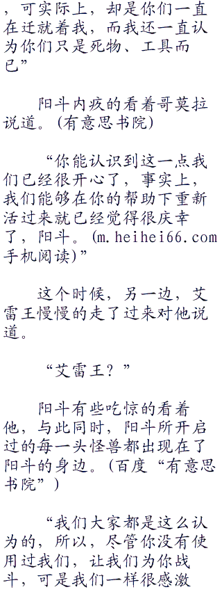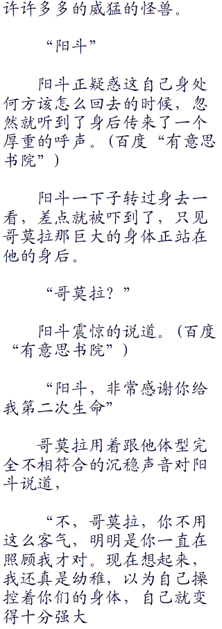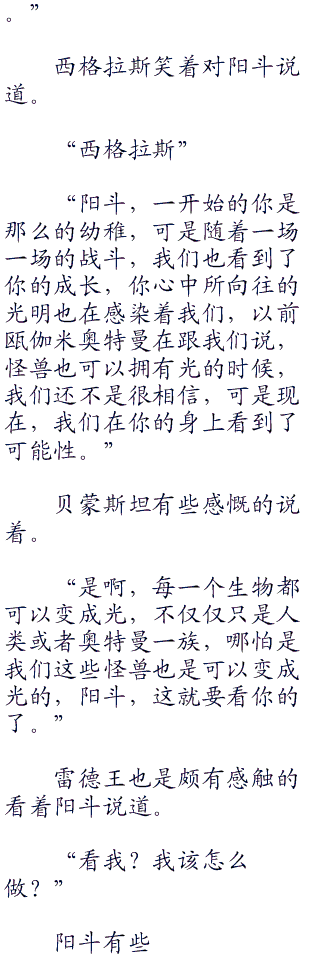 听到这里,阳斗不由得感觉到有些惭愧,他只以为这些怪兽都是死物,只是将力量赋予他的工具,而实力并不强大的西格拉斯自然就不受他的照顾了,没想到他们都是有生命的,被告知了这一点之后,阳斗心里就有些不好受了。