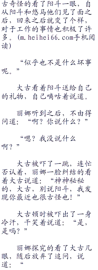 崛井小声的问着身边的野瑞,难以置信的看着一脸笑意的阳斗,野瑞看着自己手里阳斗送给他的礼物,抽了抽嘴角道:“不知道啊,不过看上去,阳斗的确是有些怪怪的。”
