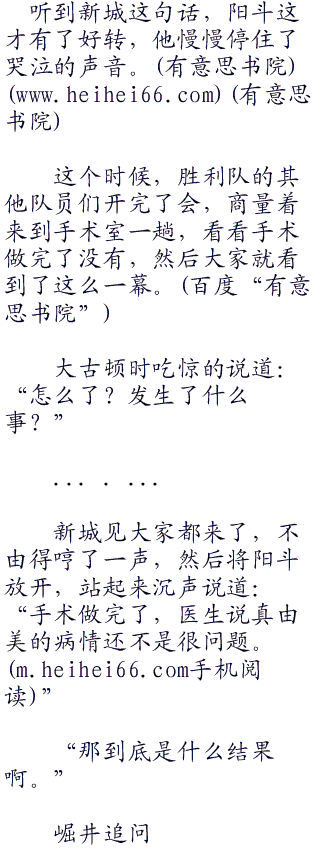 过了一会儿,手术室上面的红灯一下子就熄灭了,阳斗和新城顿时站了起来,过了一会儿,主治医生走了出来,阳斗两人连忙围了上去。