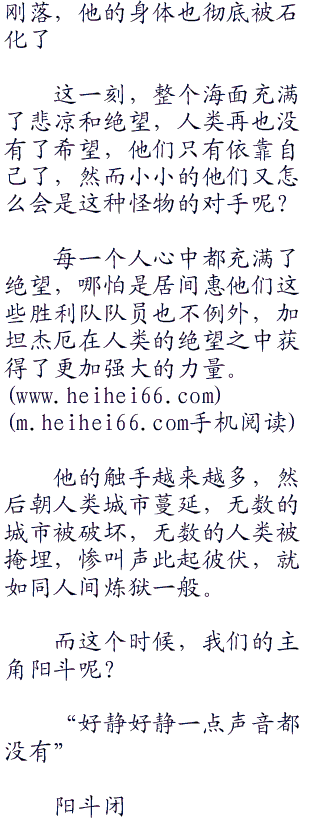 加坦杰厄已经将阳斗放了下来,因为阳斗的双脚已经开始石化了。