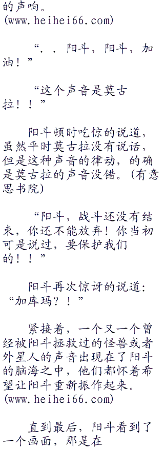 阳斗的怒吼充斥着场中每个人的内心,大家那绝望的心情好不容易恢复了一些,可就在这个时候,一道光束一下子刺穿了哥莫拉的心脏。