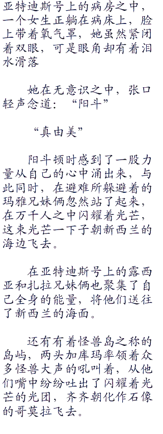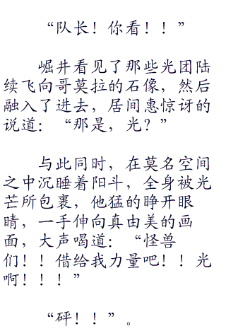 在石化蔓延至自己的脖子前,怀着最后的希望大声的吼道:“人类啊!!释放你们的光吧!!”