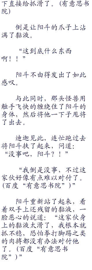 只见他挥舞着身上的触手朝阳斗鞭笞而去,阳斗准备伸手抓住一些,却不防“吱流”一