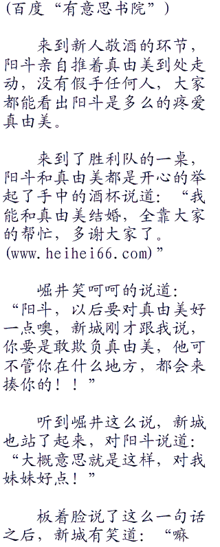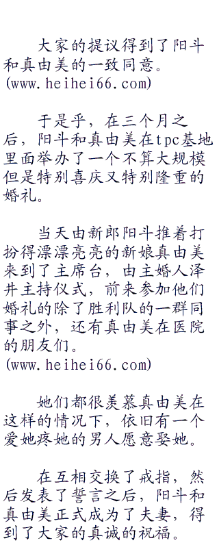 仪式完成之后,阳斗不由得抬起头笑着对真由美说道:“你终于是我的了!”