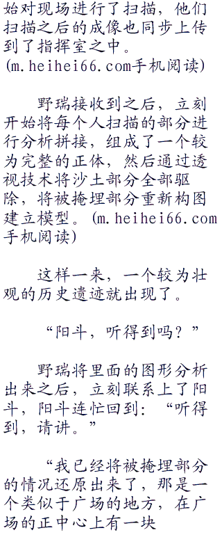 阳斗一边说着一边想着,随后阳斗打开了联络器对指挥室的野瑞说道:“野瑞,能不能扫描一下这个地方,然后把沙土里面的情况检查一下,我想看看被沙土掩埋的部分。”