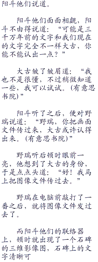 过了一会儿,野瑞传来消息说道:“那你们要用扫描仪将现场扫描之后的成像发给我,我才能分析出来。”