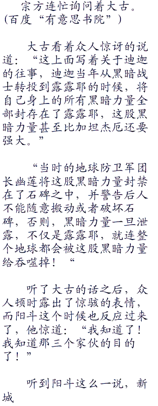 阳斗提出了自己的意见,他和大古都有自保能力,可是宗方和新城就不一定了。