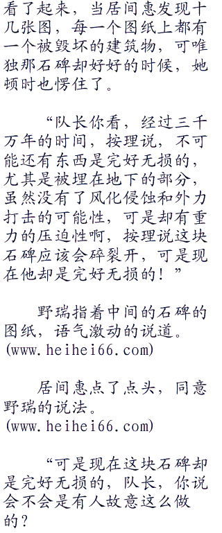 野瑞听了之后,连忙抬起头来笑道:“啊,我在研究三千万年前的建筑和我们现在的有什么不同之处。”