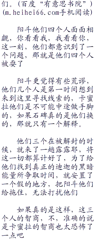 阳斗耸了耸肩道:“这也没有办法啊,要是我们离开了,卡蜜拉他们过来破坏了石碑怎么办呢?如果你们要想离开的话,倒是可以,可我却不能离开,因为这里貌似只有我才能打败他们三个了。”