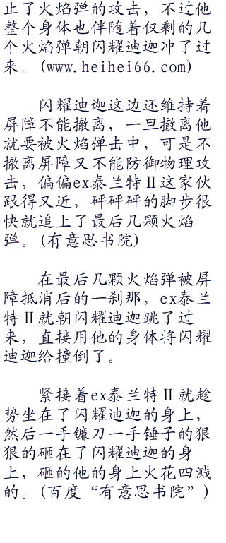他重重的呼出一口气,然后快速朝ex泰兰特2冲去,上去就是一个膝撞,将ex泰兰特2撞得连连后退。