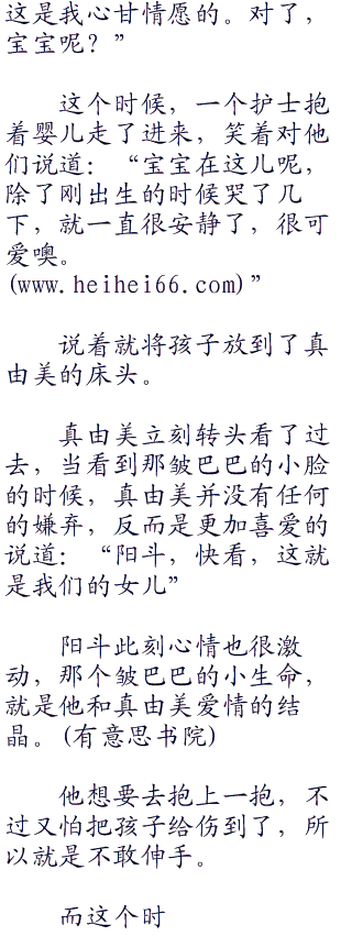 医生看了他一眼,然后笑着说道:“放心吧,母女平安,恭喜你了,多了一个女儿。”