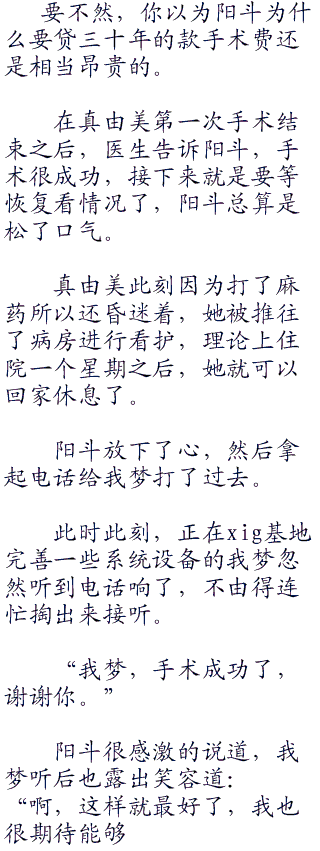 说着,我梦就把那家医院的电话给阳斗说了,而且还把到时候要去联系