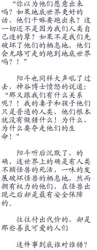 我梦一愣,随后干笑道:“阳斗老师不算是怪兽啦。”